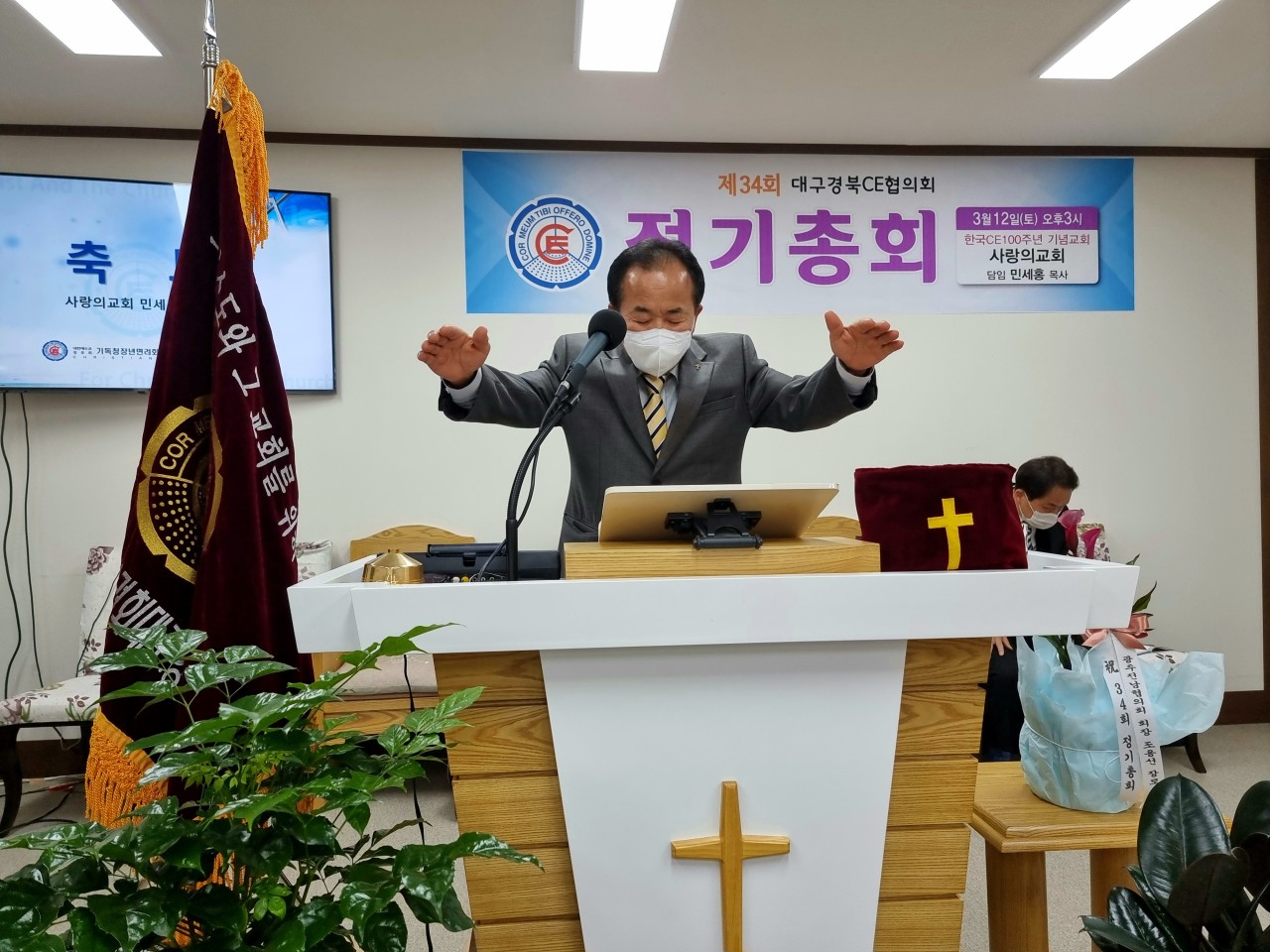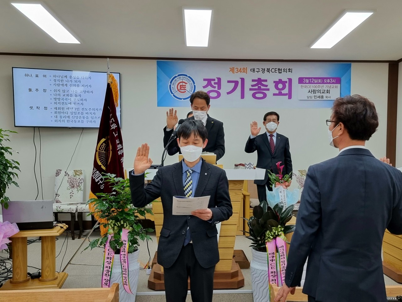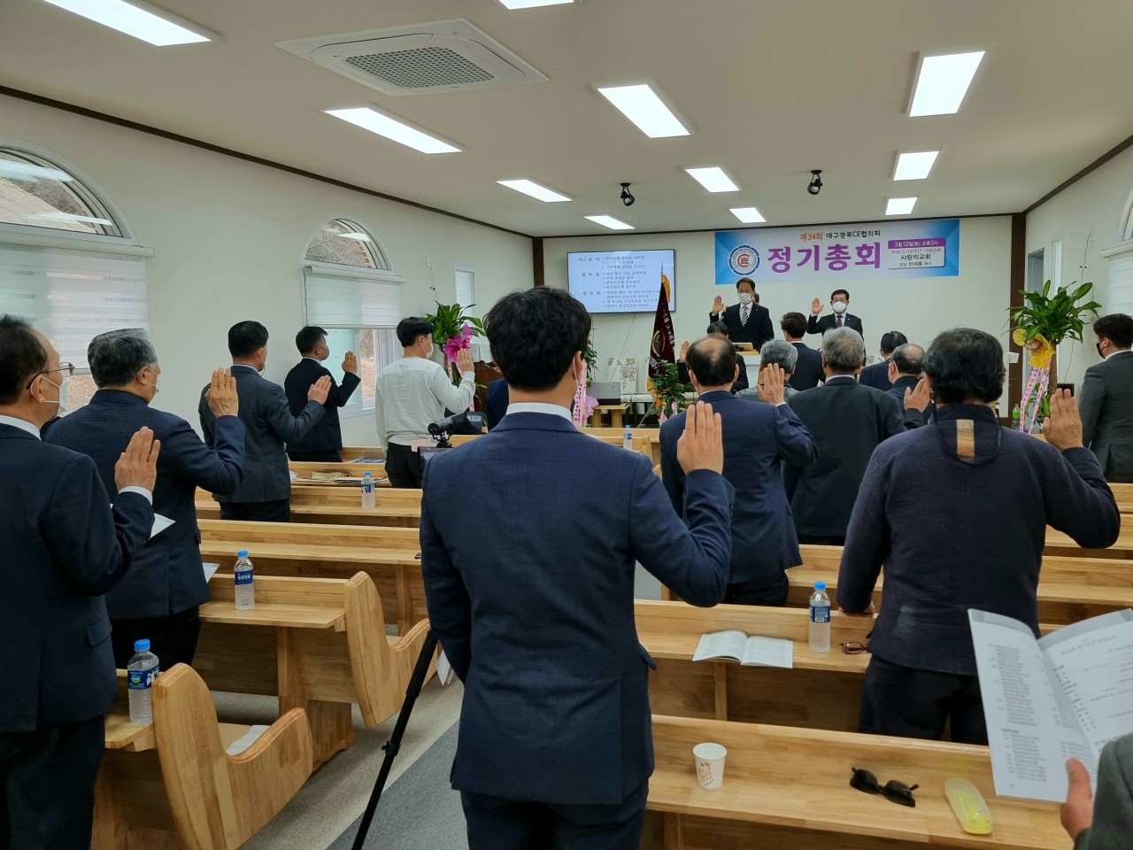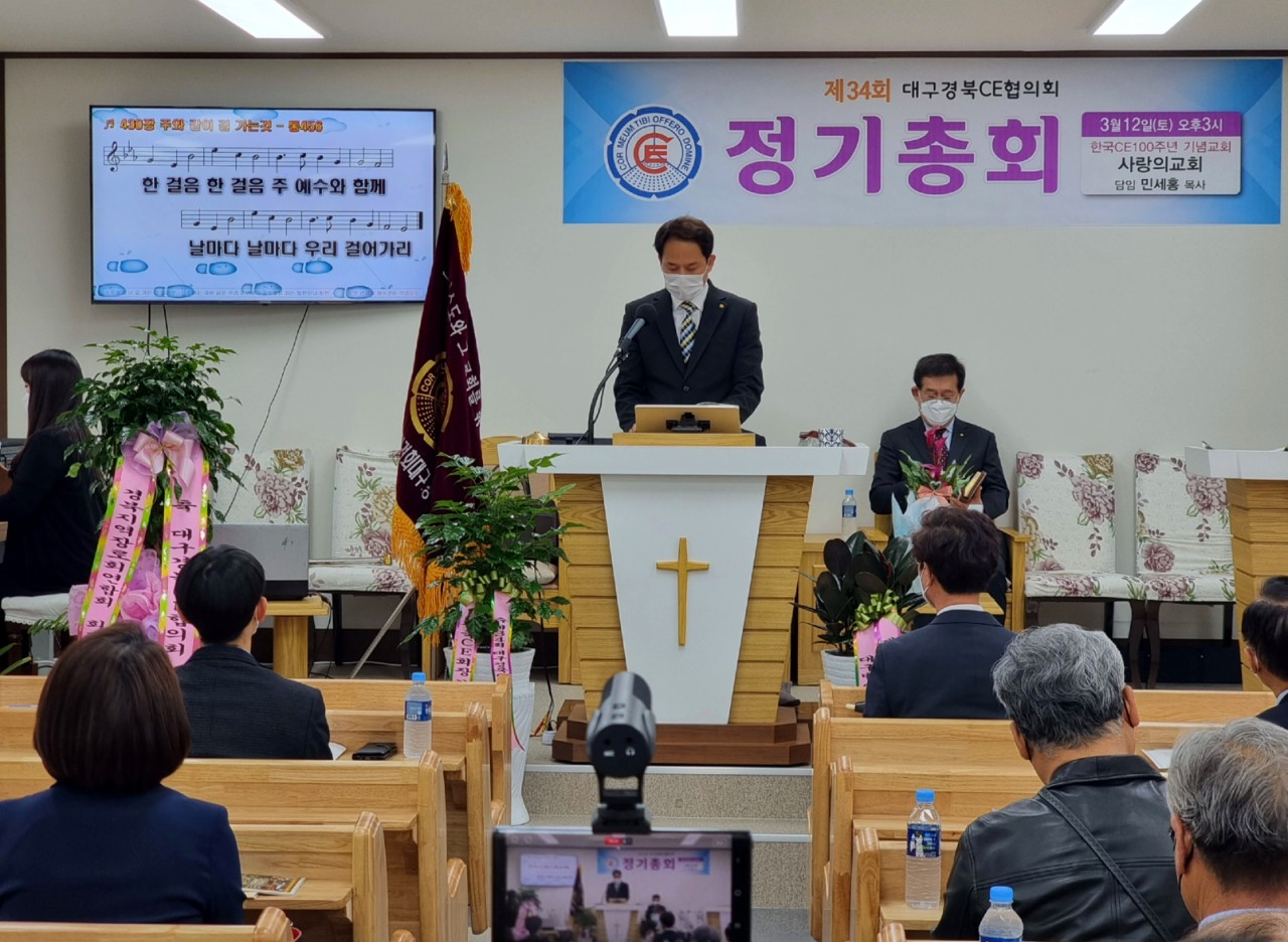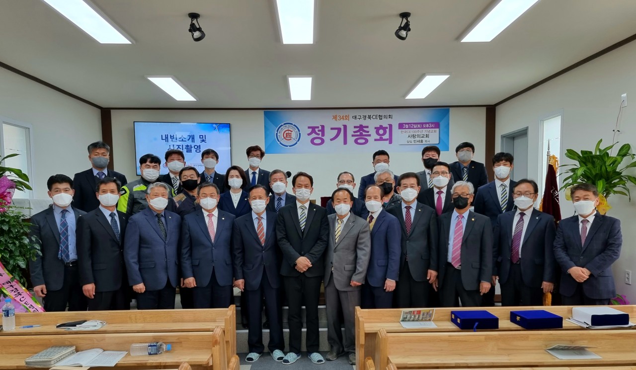 [대구경북CE협의회 34회 정기총회] -일시: 3월12일(토) 오후3시-장소: 한국CE 100주년 기념교회 사랑의교회(안동) 하나님의 은혜로 제34회 협의회 정기총회가 마쳤습니다. 33회기 회장 전상욱 집사님이 1년 더 연임하기로 했습니다. 한국 CE100주년 기념교회인 안동 사랑의교회에서 진행한 행사여서 또한 강사로 전국 CE 증경회장 되시는 모형호 목사님(새부안교회)께서 멀리 안동까지 와주셔서 말씀 전해 주심에 더욱 뜻깊은 시간이었습니다. 앞서 2시에는 대구경북CE동지회 제4회 총회가 있었습니다. 신임회장에는 동현명 장로님이십니다. 다소 멀리서 진행한 행사임에도 많이 참석해주신 분들께 감사드리며 화환 격려사(서면)로 축하해주신 전국CE회장 차충환 장로님과 임원들께도 감사드립니다. 총회 후에 면려대학 홍보와 유입물을 참석하신 분들께 나누어 드렸습니다. 지난 한회기 보호하시고 인도하신 하나님께 감사드립니다. 또 새로운 한회기 가운데 역사하실 하나님을 기대하며 많은 기도와 관심 부탁드립니다.