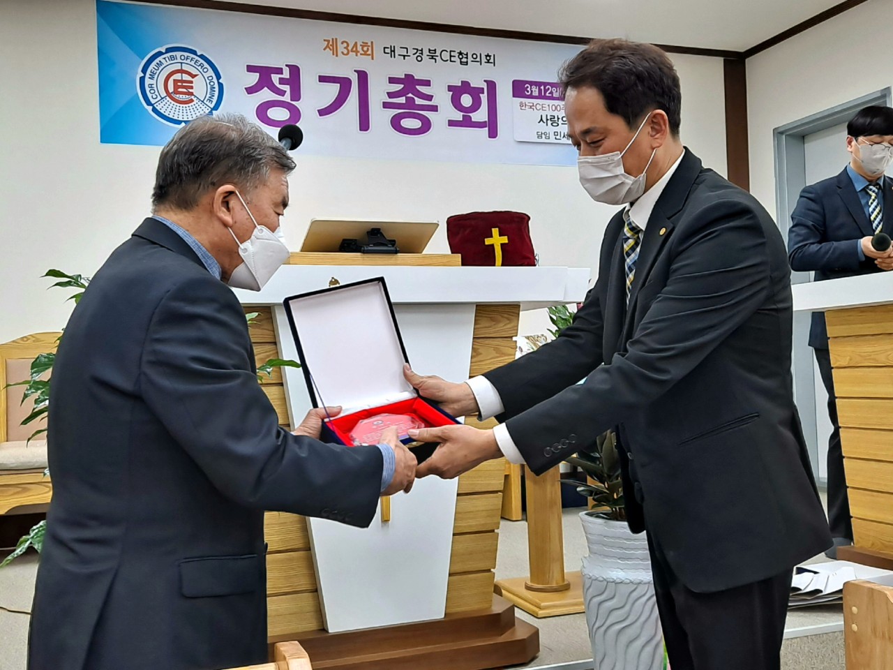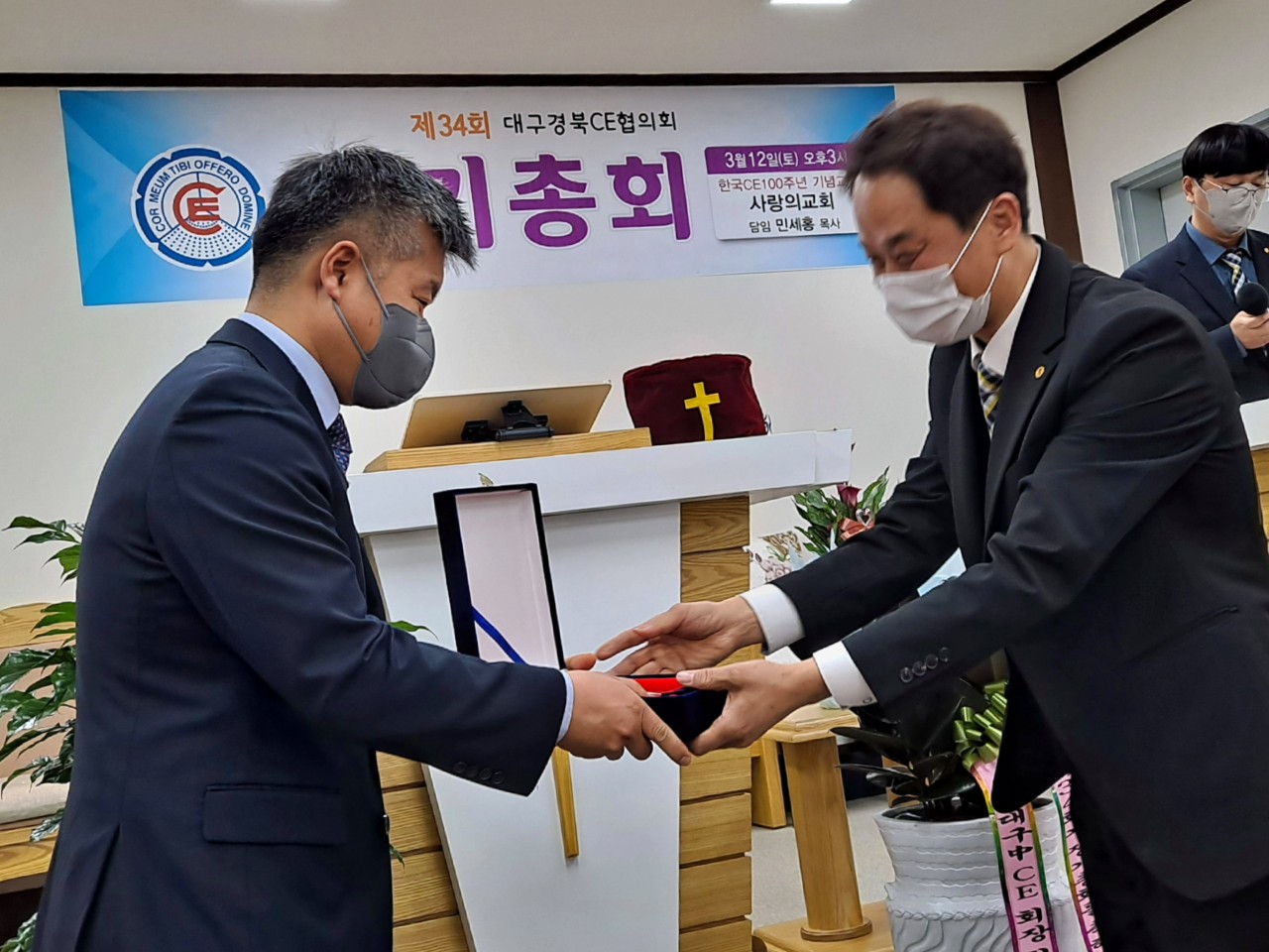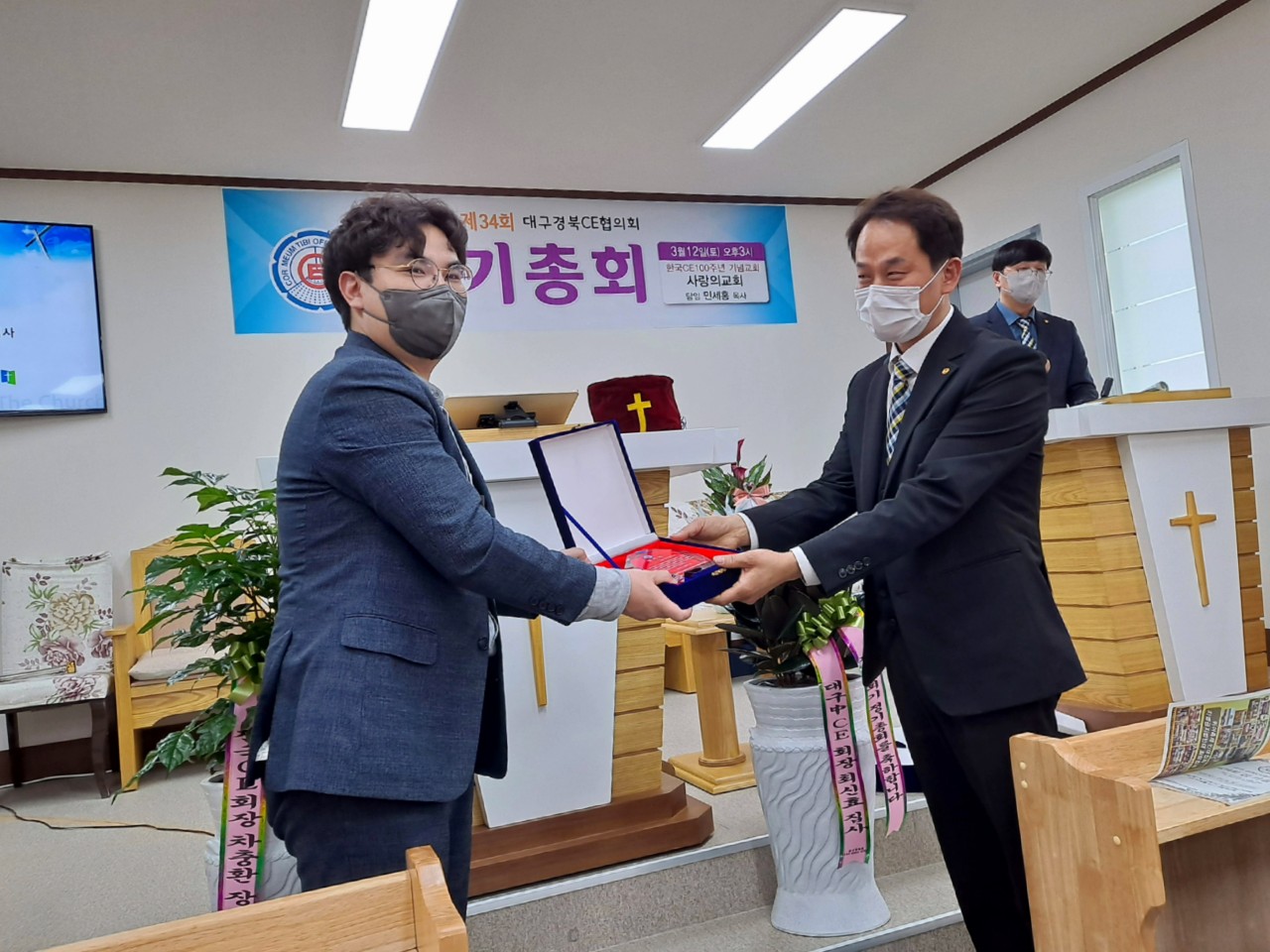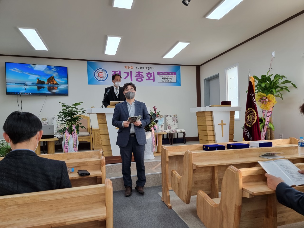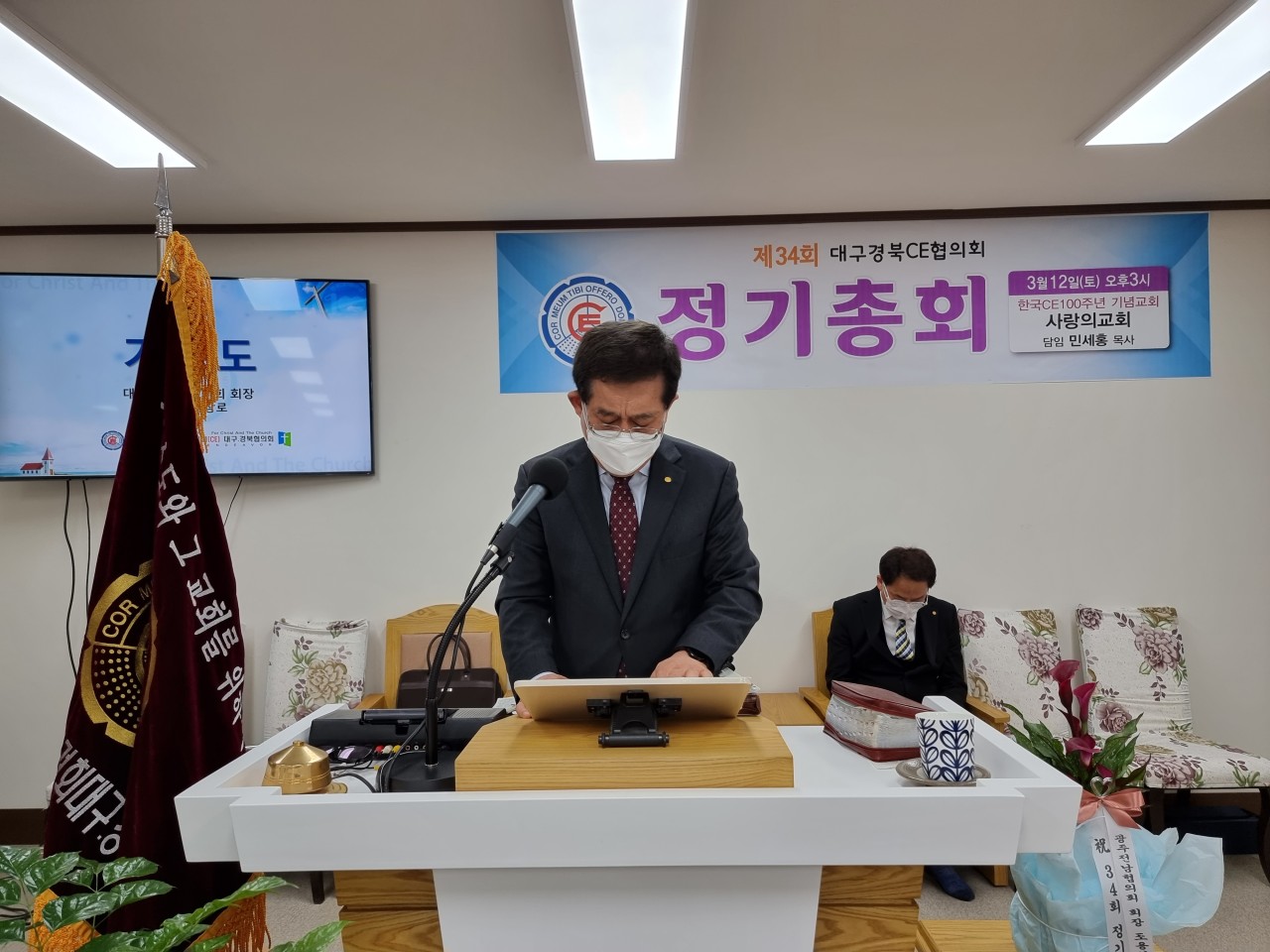 [대구경북CE협의회 34회 정기총회] -일시: 3월12일(토) 오후3시-장소: 한국CE 100주년 기념교회 사랑의교회(안동) 하나님의 은혜로 제34회 협의회 정기총회가 마쳤습니다. 33회기 회장 전상욱 집사님이 1년 더 연임하기로 했습니다. 한국 CE100주년 기념교회인 안동 사랑의교회에서 진행한 행사여서 또한 강사로 전국 CE 증경회장 되시는 모형호 목사님(새부안교회)께서 멀리 안동까지 와주셔서 말씀 전해 주심에 더욱 뜻깊은 시간이었습니다. 앞서 2시에는 대구경북CE동지회 제4회 총회가 있었습니다. 신임회장에는 동현명 장로님이십니다. 다소 멀리서 진행한 행사임에도 많이 참석해주신 분들께 감사드리며 화환 격려사(서면)로 축하해주신 전국CE회장 차충환 장로님과 임원들께도 감사드립니다. 총회 후에 면려대학 홍보와 유입물을 참석하신 분들께 나누어 드렸습니다. 지난 한회기 보호하시고 인도하신 하나님께 감사드립니다. 또 새로운 한회기 가운데 역사하실 하나님을 기대하며 많은 기도와 관심 부탁드립니다.