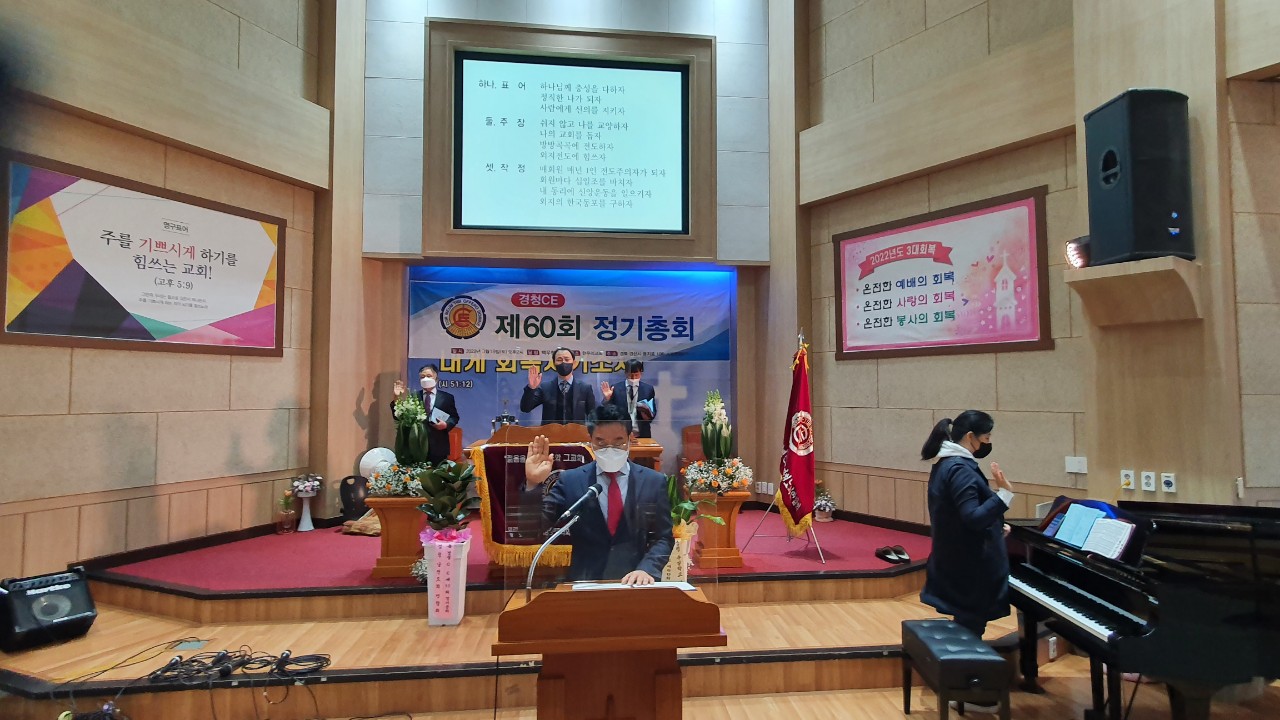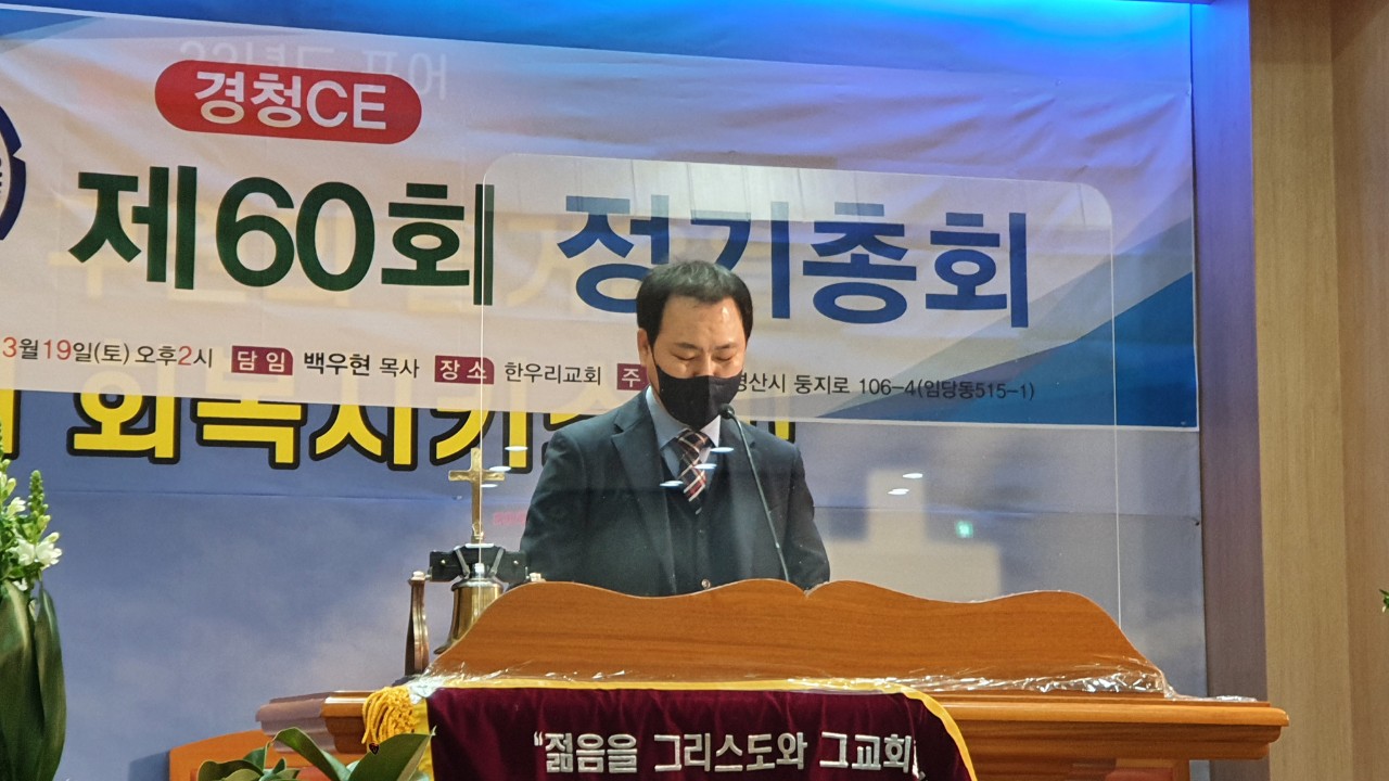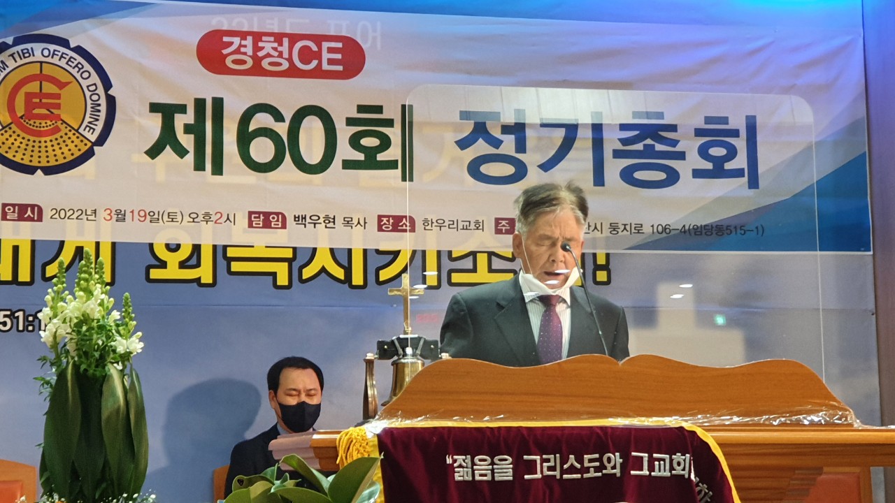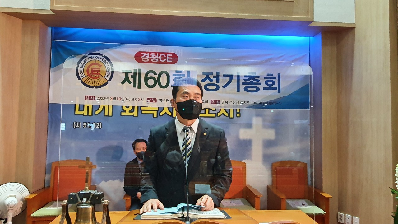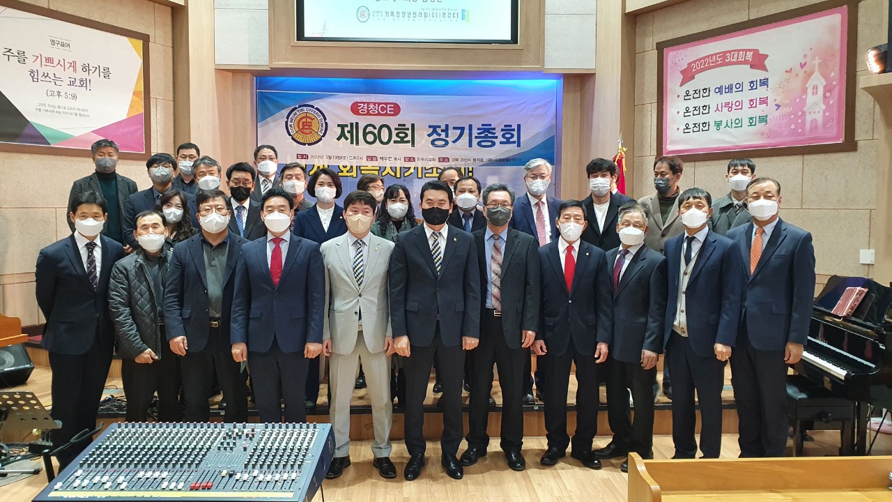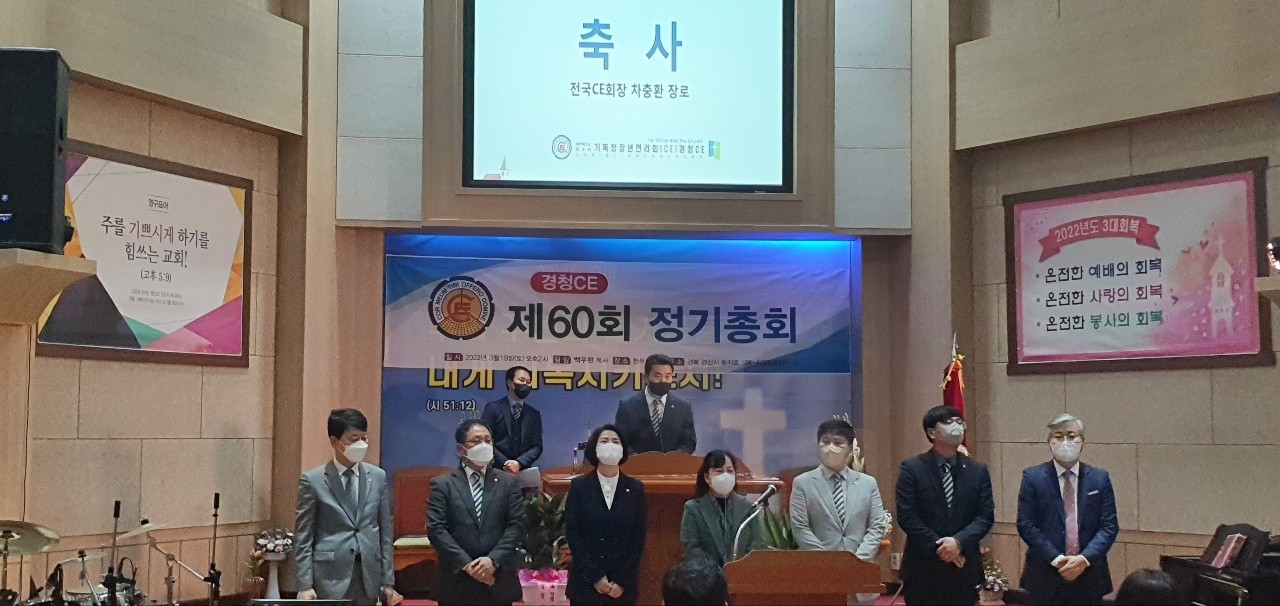 ■ 경청CE / 60회 정기총회 일시 : 3월 19일(토) 오후2시장소 : 한우리교회 (백우현목사 시무) 할렐루야 하나님의 은혜가운데 60회 경청CE정기총회가 있었습니다 지난3회기동안 수고하신 김정환회장님과 임원들께 감사합니다 이번회기 수고하실 김인수회장님과 임원들께 축하와 격려를 드립니다 오늘 총회를 위해 달려오신 증경분들과 모든 임원들께 감사합니다 다시한번 경청CE총회를 축하드립니다 감사합니다