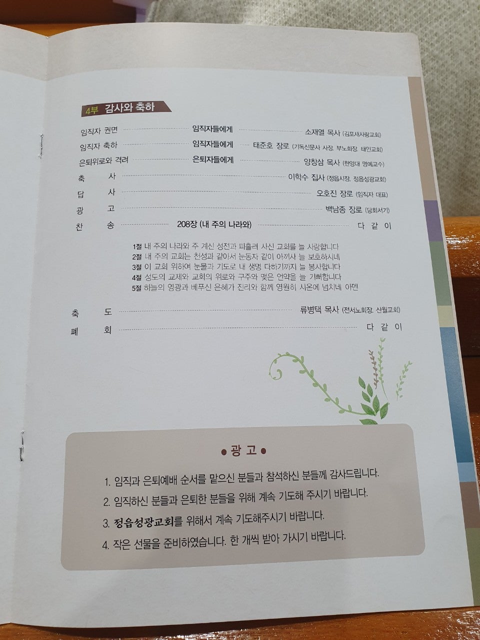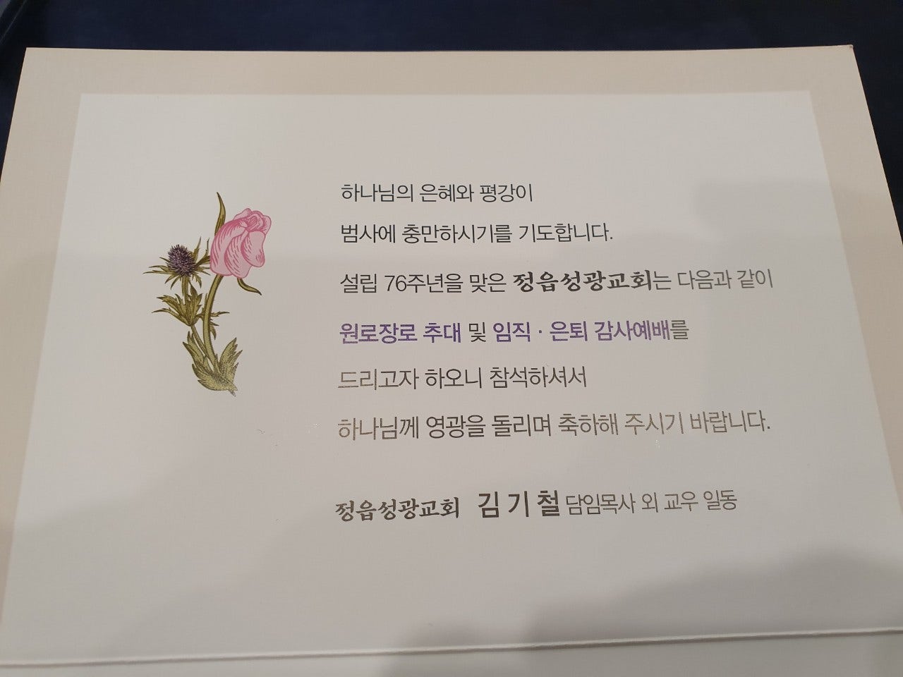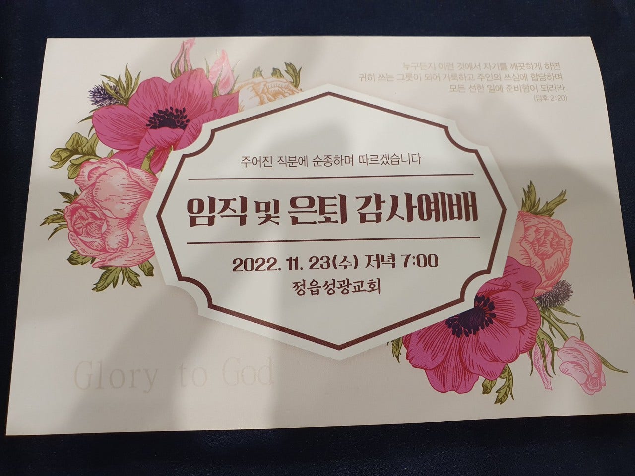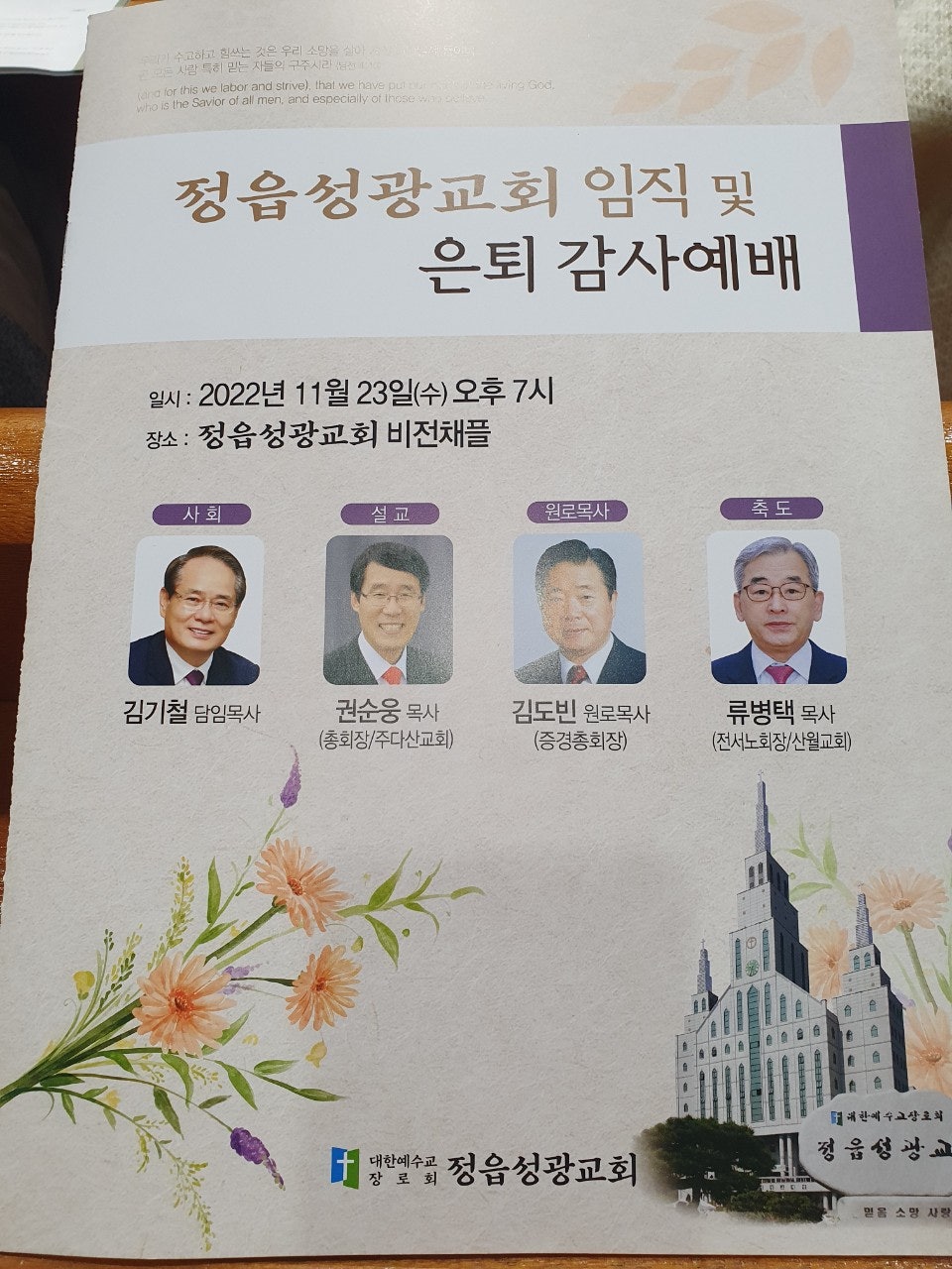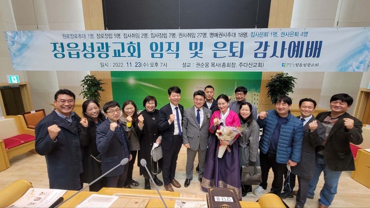 ♤임직을 축하드립니다♤ 74회기 부회장 정은숙권사와 증경부회장 이교헌장로가 임직을 받았습니다. 귀한 직분 잘 감당하시길 기도 부탁드립니다. 일시: 주후 2022년11월23일(수) 저녁7시 장소: 정읍성광교회(김기철 목사시무) 전국기독청장년면려회 연합회(CE) 74회기 회장 김재규 집사 서기 전정하 장로 총무 박명일 장로 |