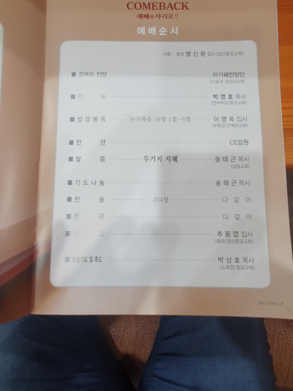 예배 인도:회장 명신광집사(경산중앙)