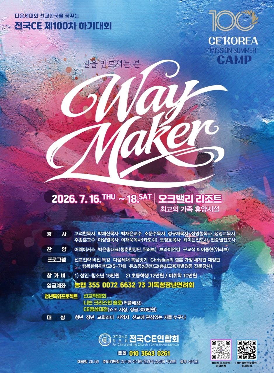 하기대회 찬양팀 리스트 어웨이커스 첫날-박은총대표 (청춘찬양단, 위러브) 2일-브라이언킴 3일-구교석&이종현(위러브) 은혜 가득한 찬양시간이 될 듯 합니다. 섭외해 주신 회장님 수고 많으셨습니다. 이제는 홍보!!! 등록입니다!! 700명!!! CE 맨 여러분 힘내주십시요~~ 3/22 조기등록 마감일이 임박합니다. 1만원 할인 혜택과 30인 이상 등록시 제공되는 지원금 혜택 30인 이상 - 30만원 40인 이상 - 40만원 50인 이상 - 50만원 도 있으니 서둘러 주세요~~